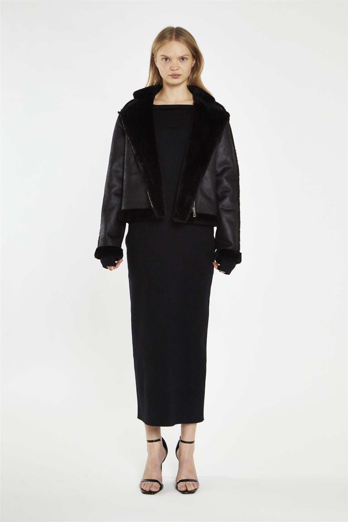 Glamorous Women's Black Fur-Trim -Jacket. Discover your new cold-weather favourite with our Black Fur-Trim Jacket. This cozy piece brings a touch of glamour to chilly days, featuring luxurious faux fur trim that adds warmth and style. The open collar design gives you the freedom to show off your favourite scarf or layer over a turtleneck for extra coziness. Fully lined for ultimate comfort, this jacket keeps you snug without sacrificing style. The sleek silver hardware details add a modern edge, catching the light as you move. It's more than just a jacket; it's your go-to piece for turning heads on frosty mornings. Pair it with jeans and boots for a casual weekend look, or throw it over a dress for a night out. This versatile jacket effortlessly bridges the gap between casual and chic, promising to be the highlight of your winter wardrobe. With every wear, you'll feel like you're wrapped in a stylish hug, ready to take on whatever the day brings..