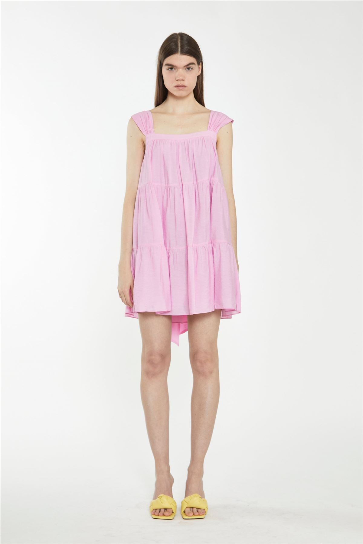 Glamorous Womens Candy Pink Tie-Back Mini Dress. This fashion forward�mini dres's�is perfect for the Spring season. Featuring a tiered style with tie back detail in a flattering mini fit, thi's�piece will look great on you! Style with heeled mules or a pair of knee-high�boots for the ultimate look.