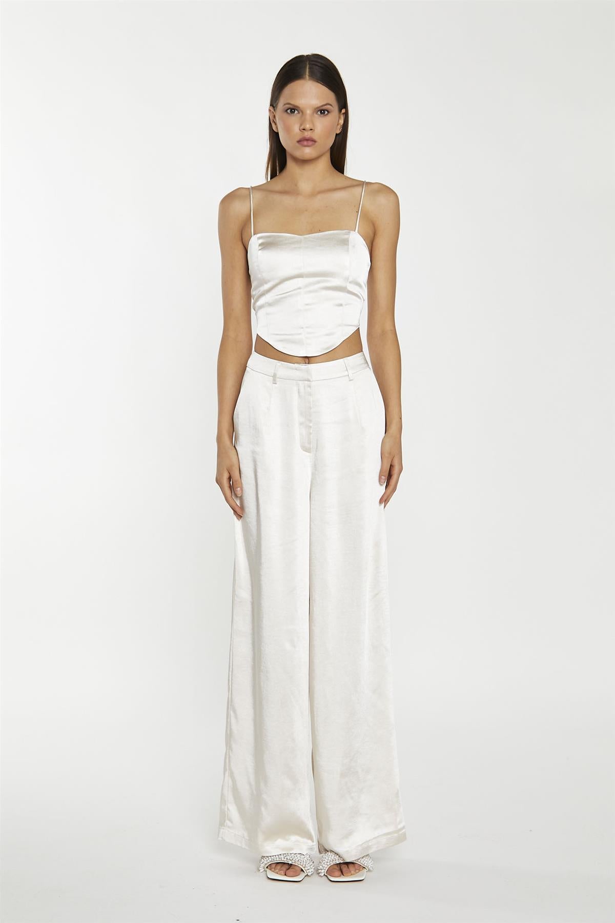 Glamorous Women's Champagne Satin Wide Leg Trousers. These Wide Leg Trousers are ready to take you from day to night in luxe style! Perfectly paired with the matching top, these trousers flatter your silhouette while the luxurious satin fabric will make you stand out in any crowd. Elevate your style game with effortless chic!