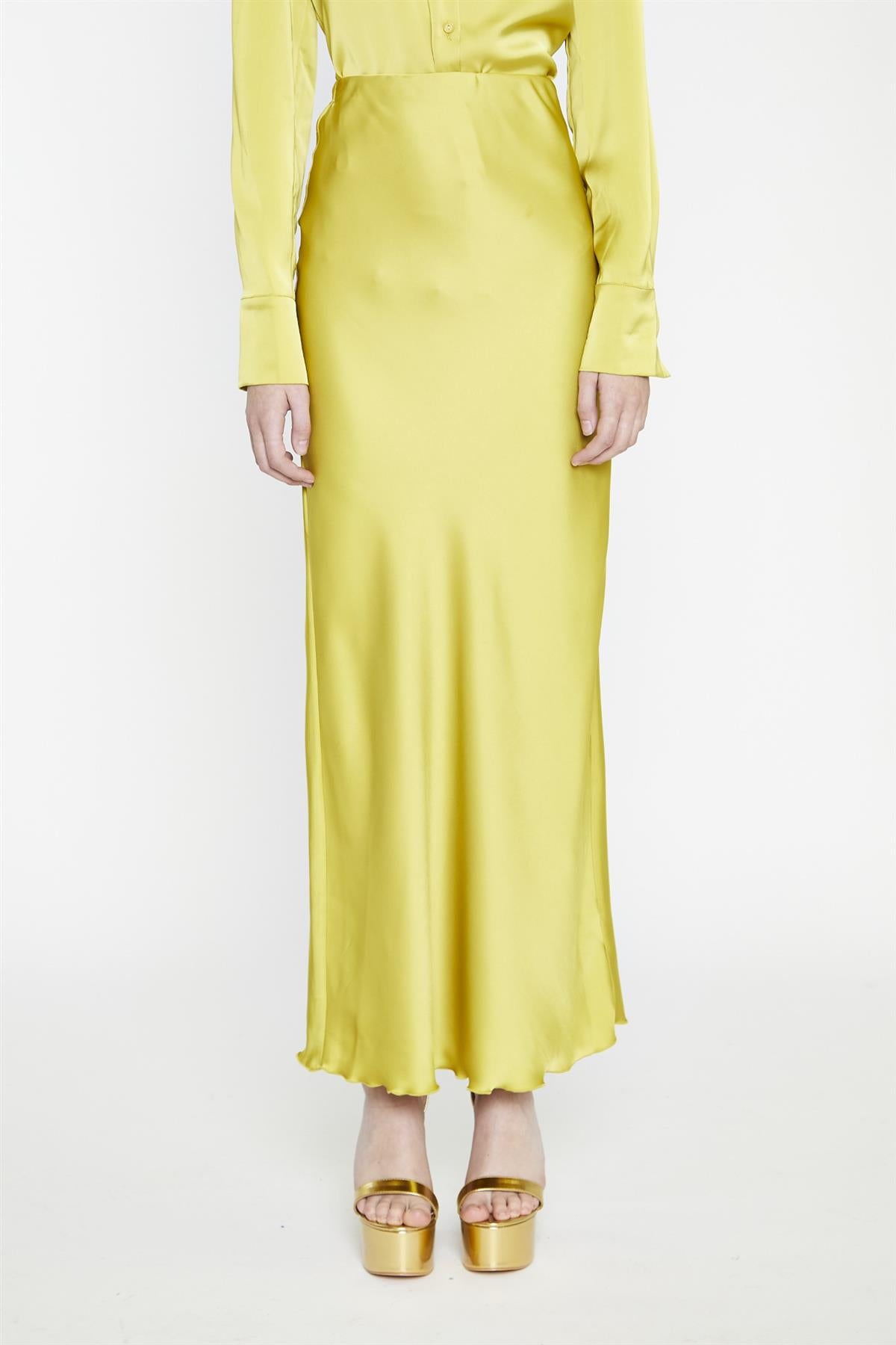 Chartreuse Sateen Bias-Cut Midi-Skirt