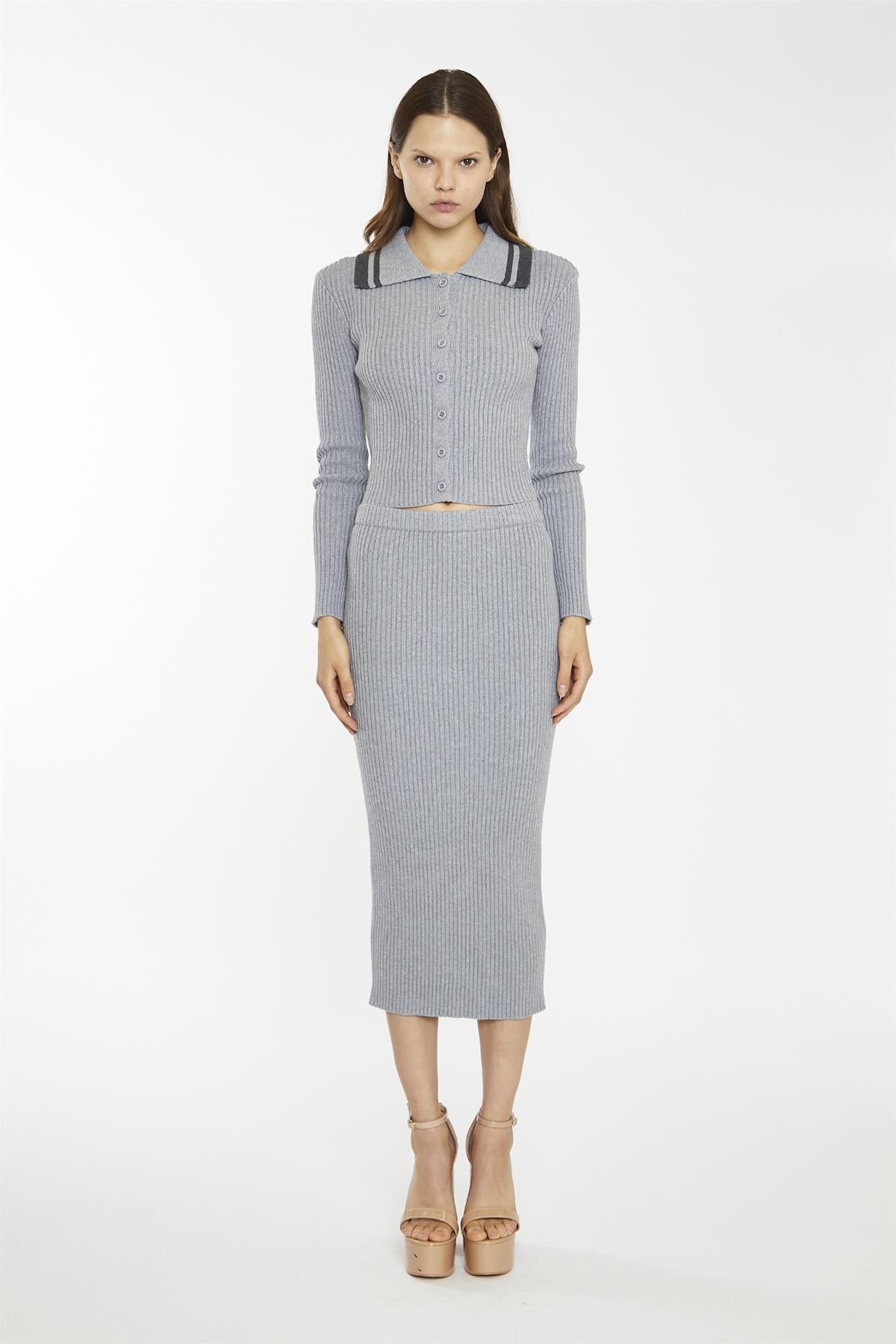 Glamorous Women's Grey-Marl Charcoal Knitted Shirt. Mix up your work wear wardrobe with this stylish knitted shirt. Perfect for colder months, this rib knit top features a classic button through...