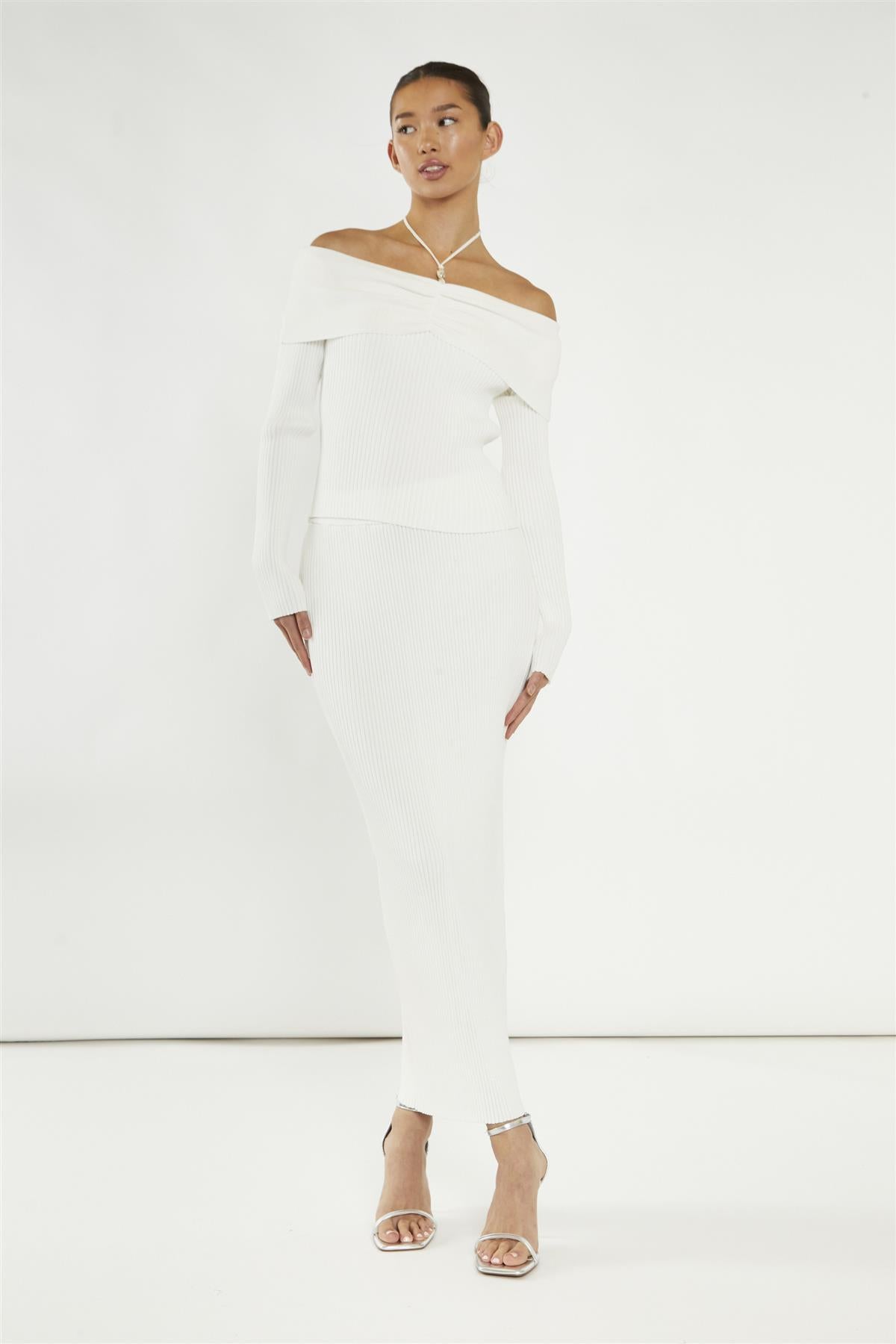 Glamorous Women’s Off-White Beaded Strap Bardot-Top . This off-white, off-the-shoulder top is a perfect blend of relaxed style and elegance. Designed with beaded straps that add a subtle touch of charm, it brings a playful twist to any outfit. The bodycon fit enhances your natural shape, making it comfortable yet flattering. With halter straps and intricate bead details, this top has a unique look that feels effortlessly stylish. Pair it with the matching skirt from the set for a polished, put-together vibe, or mix it with your favourite high-waisted jeans for a casual yet chic option. Whichever way you wear it, this top is versatile enough to suit any occasion.