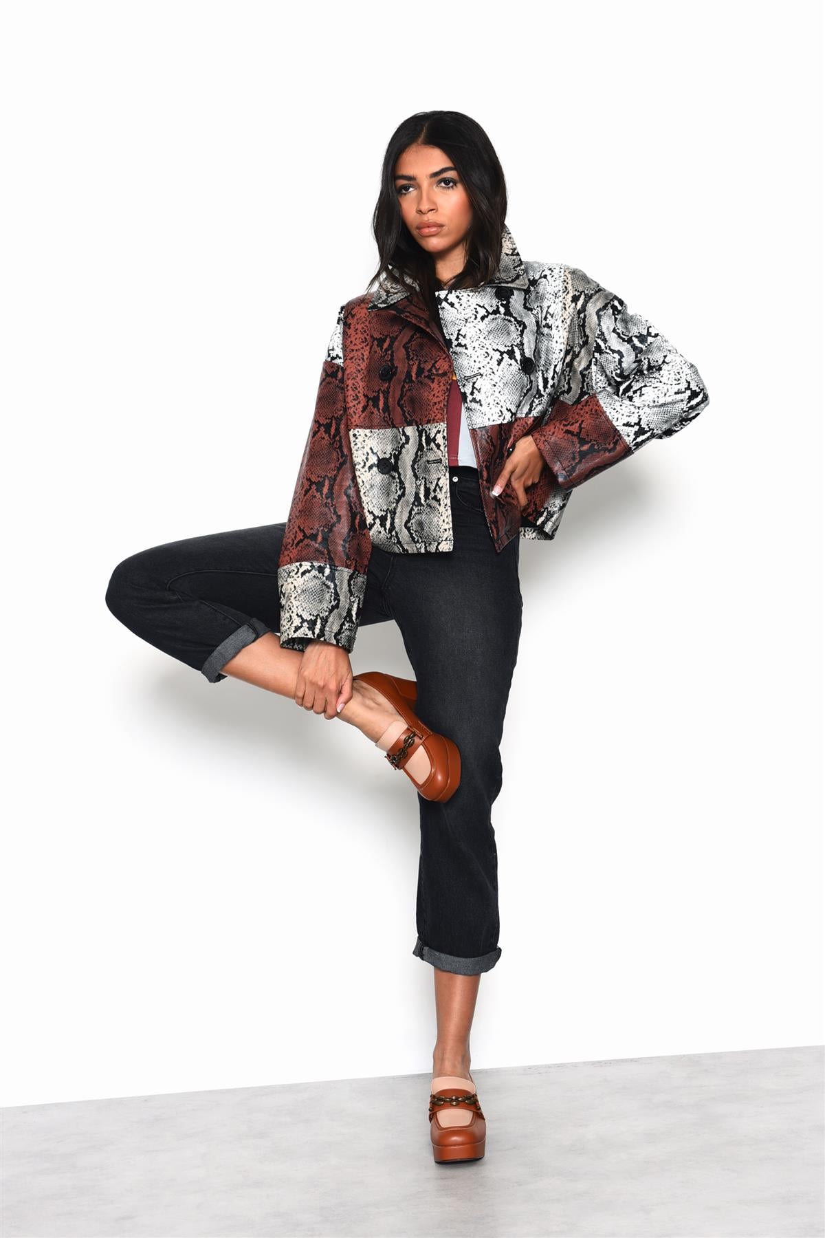 Glamorous Women's Snakeskin-Patchwork Button-Front Long-Sleeve-Jacket. This long-sleeve jacket brings something a little different to your outer layer game with its snakeskin patchwork that adds texture and edge without going overboard. The relaxed fit makes it easy to throw on over just about anything—tees, knits, even dresses—while still feeling roomy and comfortable. Button it up when the breeze picks up or leave it open for a more laid-back feel. The long sleeves keep it practical, but it’s the mix of prints and patterns that give it a cool, lived-in vibe. Pair it with jeans for an easy everyday look, or layer it over something soft and fitted to play with contrast. It’s a low-pressure way to add something bold to your day.