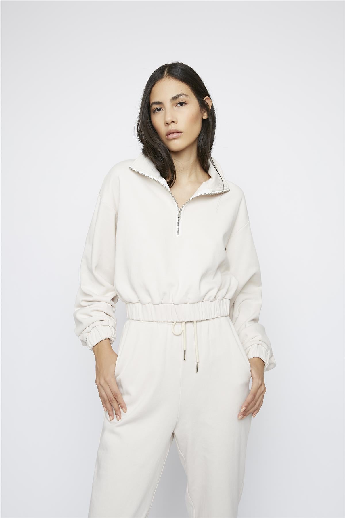 Glamorous Womens Stone Quarter Zip Sweatshirt. Take your leisurewear look to the next level with this stylish quarter zip jumper. A must have for your wardrobe. Style with the matching�joggers for a fashion forward look.