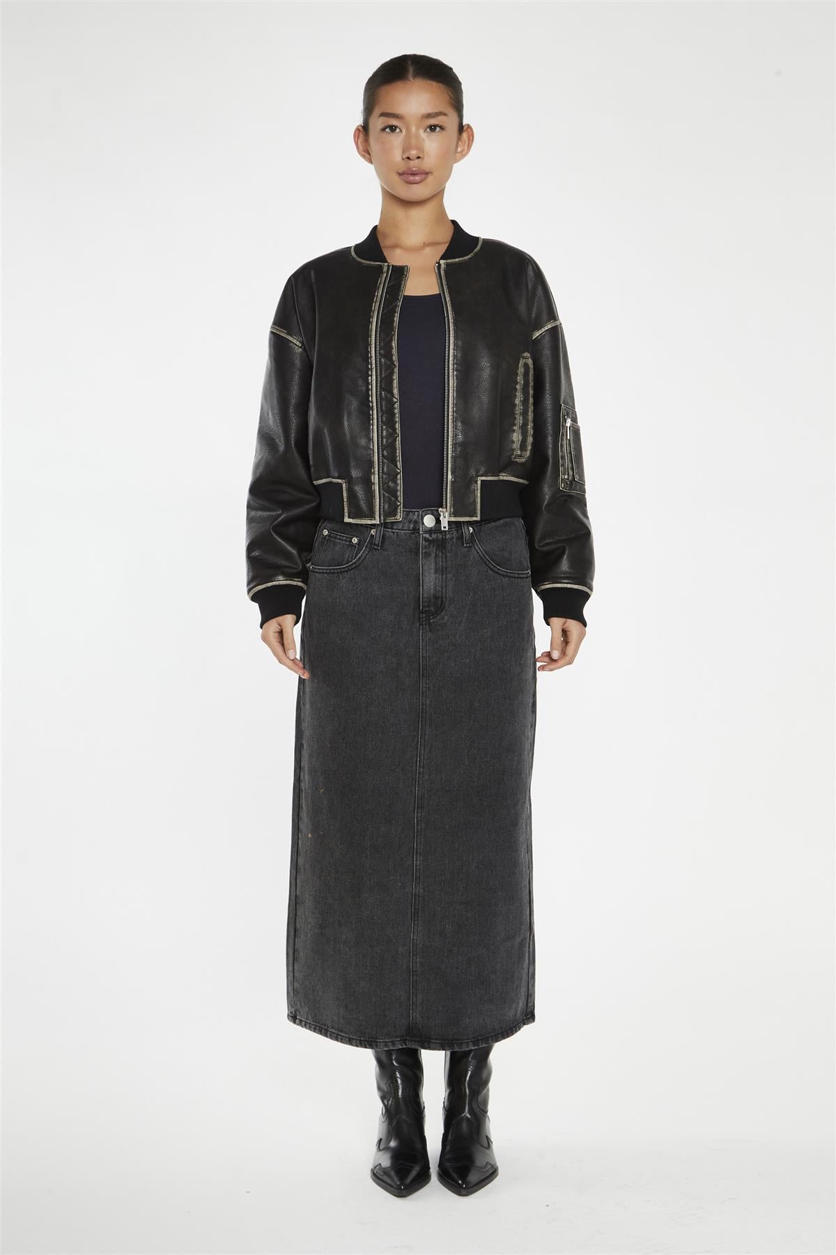Glamorous Women's Washed-Black Padded Bomber-Jacket. Looking for a cool jacket that's both practical and stylish? Check out this washed-black bomber jacket. It's made from PU fabric, giving it a sleek look that's also easy to clean. The padded lining keeps you warm when the temperature drops, making it perfect for those chilly evenings or brisk mornings. The ribbed cuff and hem add a classic touch while helping to keep the cold air out. One of the coolest features is the utility patch pocket on the sleeve - it's not just for show, it's actually super handy for keeping small items close at hand. This jacket is versatile enough to pair with jeans for a casual look or dress up with slacks for a night out. It's the kind of piece that becomes a go-to in your wardrobe, ready to add a bit of edge to any outfit..