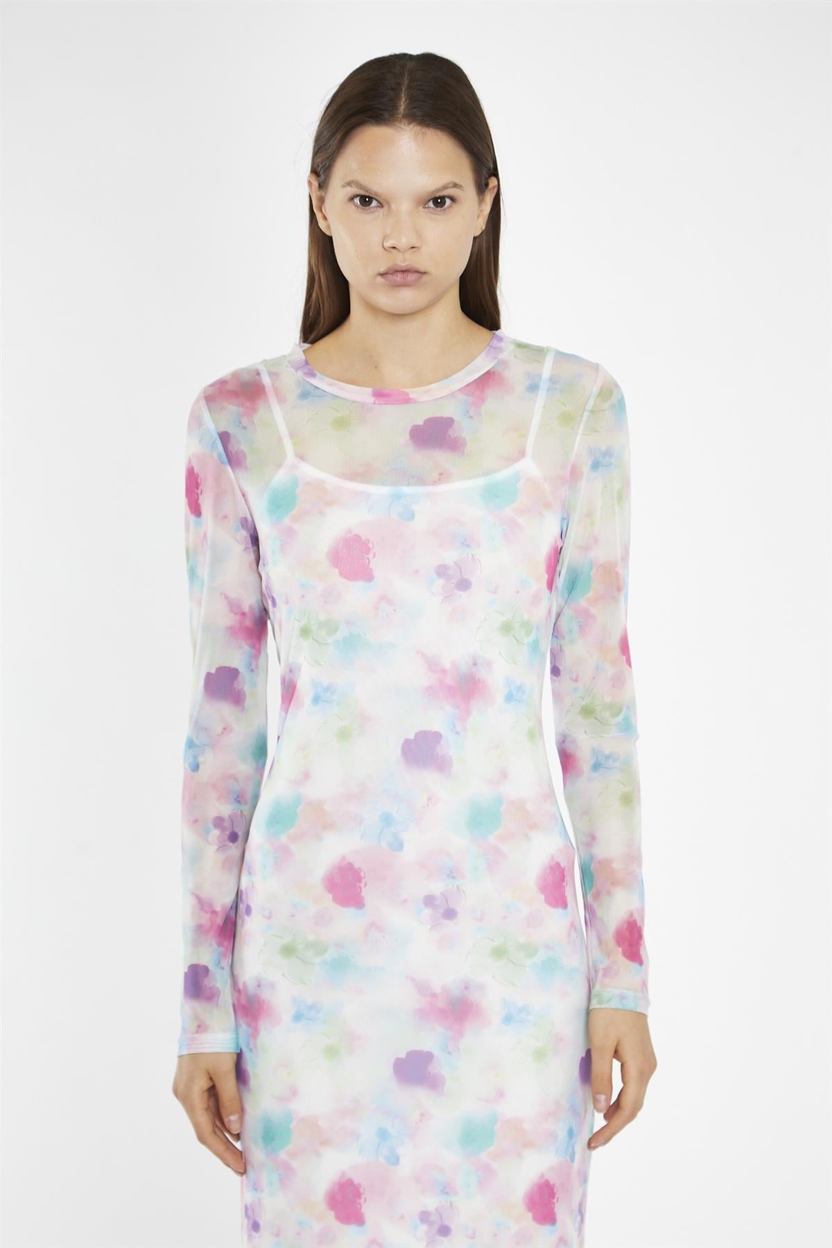 Glamorous Women's Watercolour-Floral Mesh Long Sleeve Midi-Dress. Slip into our Long Sleeve Midi-Dress for a flirty yet sophisticated look. The delicate watercolour print fabric adds a touch of whimsy, while the crew neckline and long sleeves keep it classy. The bodycon fit and midi length will flatter your figure, and the included lining slip dress ensures comfort and coverage. Dress this up or down, it will be a great addition to your wardrobe!